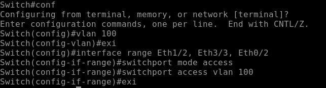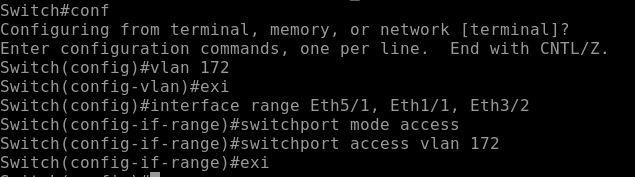1.2 Create VLAN 172 and VLAN 100 on Switch SW01 and assign Interfaces Eth5/1, Eth1/1, Eth3/2 in access VLAN 172 and Interfaces Eth0/2,Eth1/2 and Eth3/3 in access VLAN 100