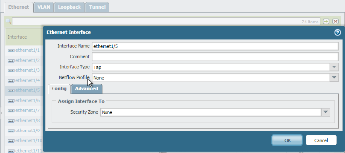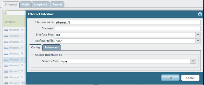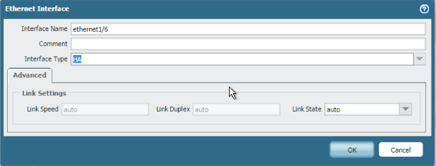 Here we configure Ethernet1/2, Interface type: Layer 3,Virtual Router: Default and Security Zone: Untrust