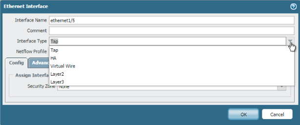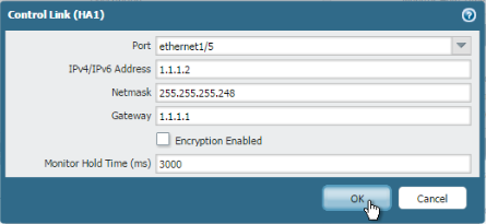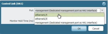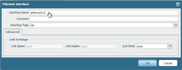 Click on the interface Ethernet1/5 for modifying the properties. Here change the interface type to H.A. and click on OK.