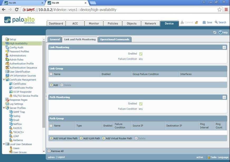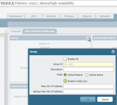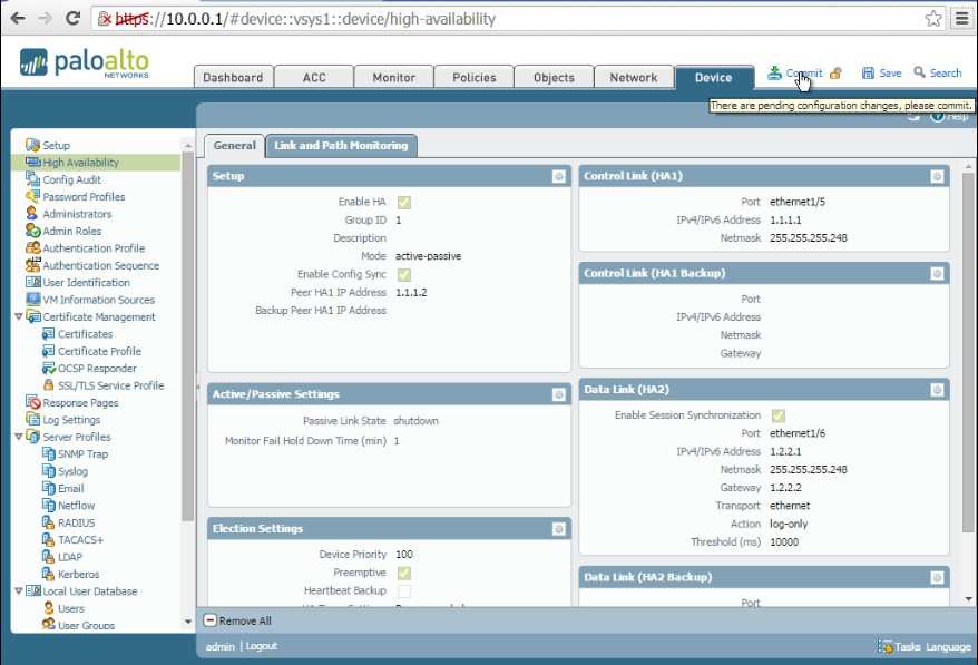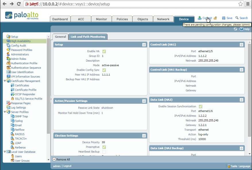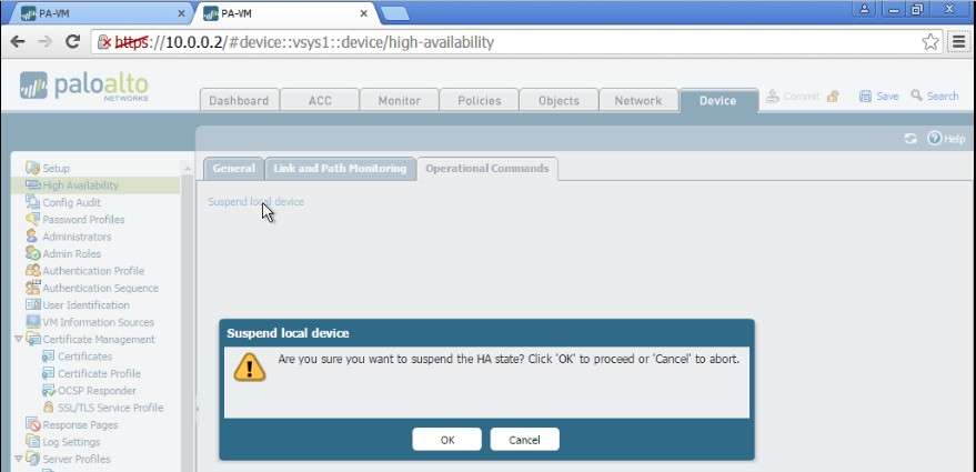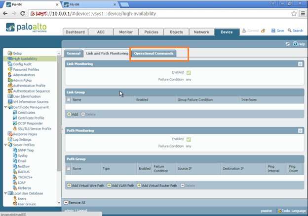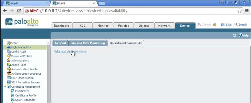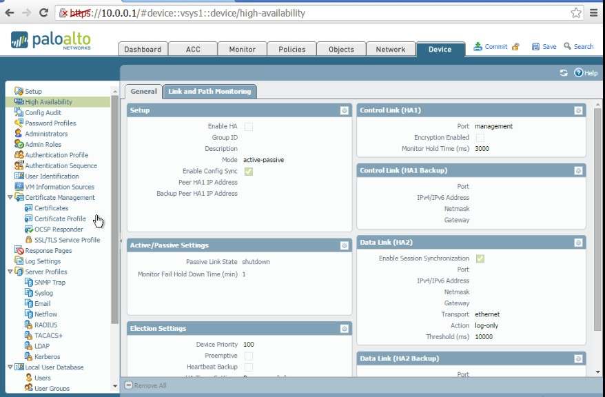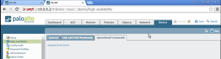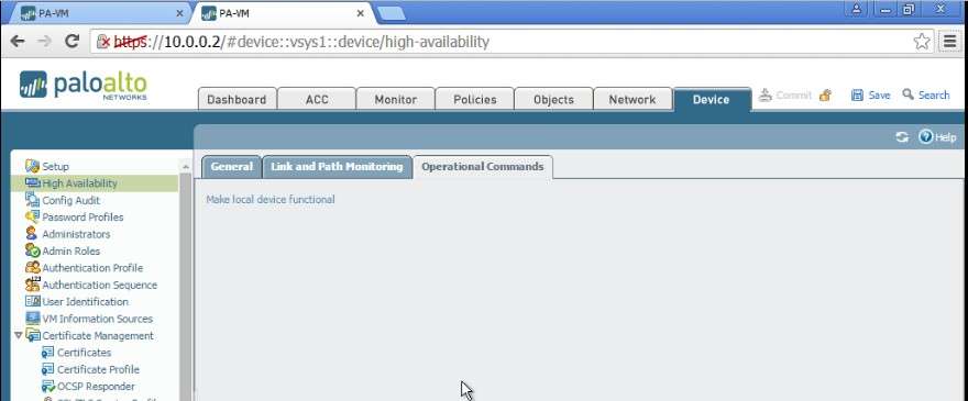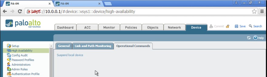 Now go to Device Tab and on Left side options, choose High-Availability.