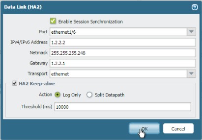 Similarly configure Interface Ethernet1/6 with interface type: HA