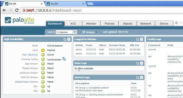 Remember : sync only from PaloAlto01 and it will replicate all the configuration to the PaloAlto02.