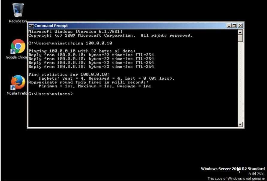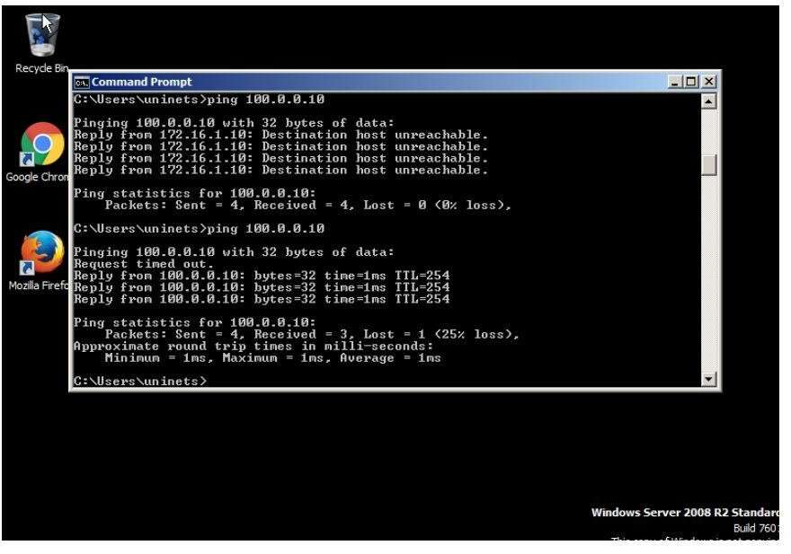 Then again check connectivity with ping 100.0.0.10 After few packet drop our communication good to go!