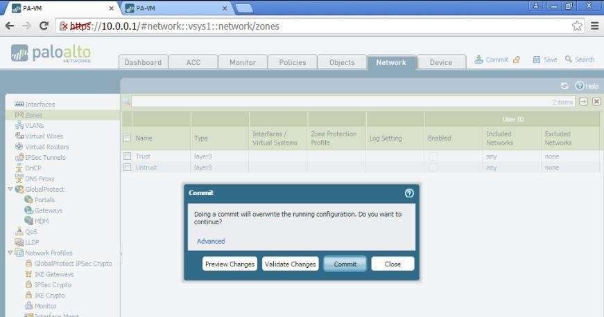 Then click ok and then click on commit, it will allow traffic to move from trust to Untrust.