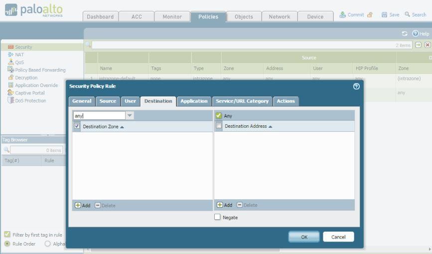 Now it’s time to create security policy so that traffic can be inspected and the pass through the firewall.