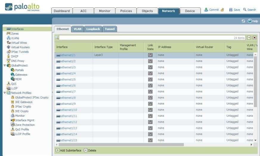 1.4 Configure PaloAlto01 interface Ethernet1/1 and divide it logically by creating Sub interface.