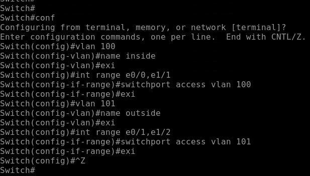 Firstly, on Switch we will configure vlans as shown below