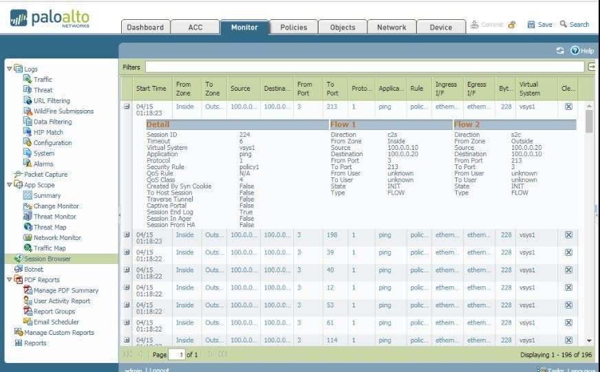 Here we can see detailed information of sessions: