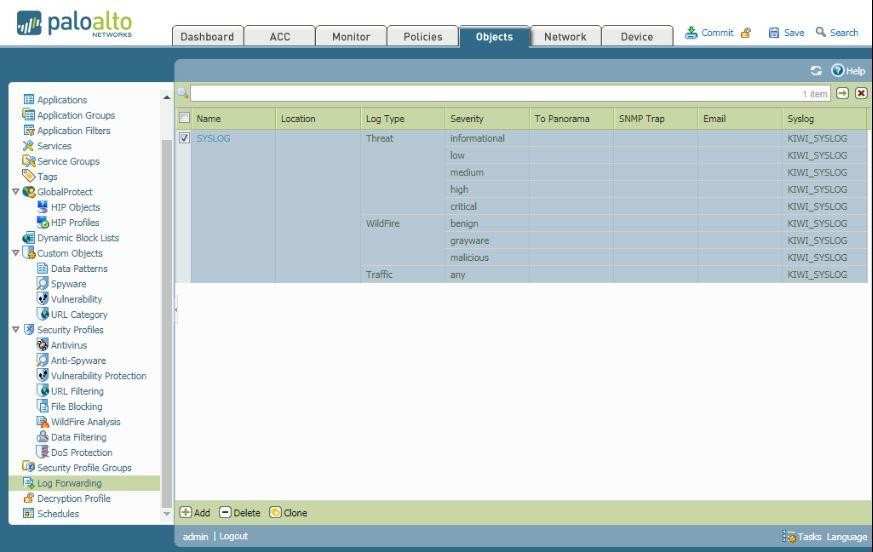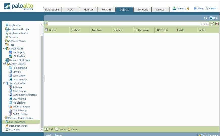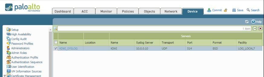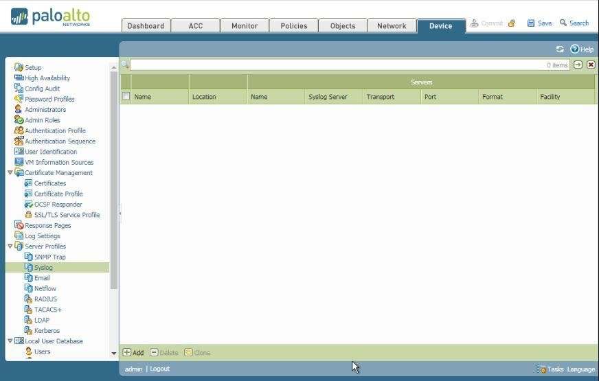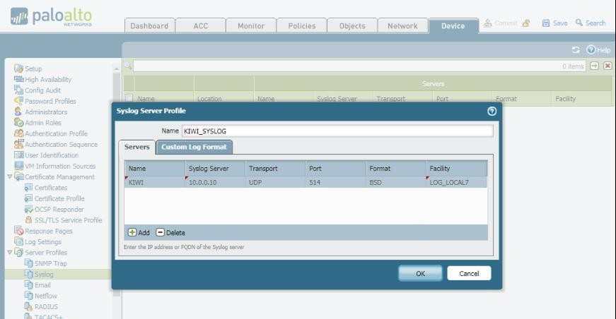 1.3 Add Syslog server in PaloAlto01 to receive log in our workstation.