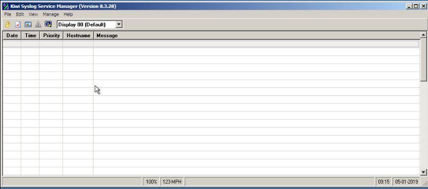 Go to Our workstation Install Kiwi syslog and run it. Here I have an older version that will look like as shown below just after installation:
